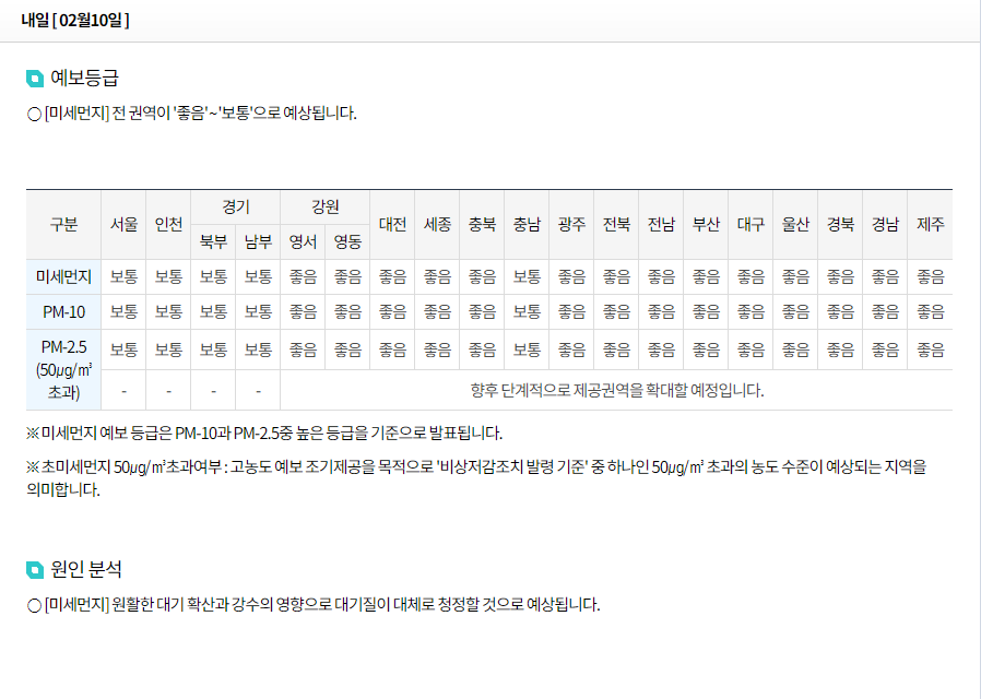 미세먼지 예보 출처는 에어코리아 대기정보예보/경보 항목입니다.